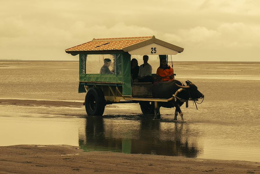 Notre suggestion - Virée sur l'île de Taketomi. Depuis le port d'Ishigaki, des ferries s'échappent toutes les trente minutes vers cette petite île voisine. Déployée sur un peu plus de 5 km², elle était jadis un ancien récif corallien avant de muer progressivement vers sa forme actuelle. Le confetti de corail assure une retraite hors du temps. Une poignée de maisons traditionnelles aux toits de tuiles rouges (typiques de la culture Ryukyu), quelques ateliers de poterie, des déplacements à pied ou à vélo. Et, comme partout sur l'archipel, un sable immaculé associé à des flots transparents – testé et approuvé du côté de Kondoi Beach, par exemple.