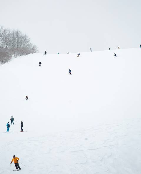 La station d'Echigo-Yuzawa se révèle particulièrement populaire auprès des Tokyoïtes. Un certain nombre de facteurs l'expliquent. La proximité avec la capitale, tout d'abord. La logistique de transport facilitée depuis la mise en place d'une ligne ferroviaire (moins de 2h en train direct) ensuite. Et, enfin, un ingrédient essentiel à toute échappée givrée : une abondance de neige, poudreuse et duveteuse. A fortiori quand celle-ci se dépose, comme ici, plusieurs mois durant l'hiver. Avec plus d'une dizaine de pistes de ski, les adeptes débutants comme confirmés s'en donnent à cœur joie. Puis, après une journée à dévaler les pistes, ils sont heureux de se glisser dans les bains chauds qui ont fleuri aux quatre coins de la ville, issus de sources aux bienfaits ancestraux.
