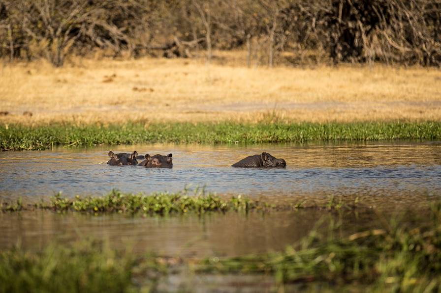 Déjà prévu au programme - Safari. Les sorties d’observation se font le matin et le soir. Ce sont les périodes de douceur de l’air et, par conséquent, de plus grande activité de la faune. On se déplace en véhicule aménagé, ou en pirogue mokoro sur la Khwai River, avec des rangers anglophones. Ces derniers connaissent parfaitement la topographie de la réserve et les habitudes des animaux. Ils vous mènent invariablement aux meilleurs spots. Les hippopotames ont bénéficié ici d’une protection royale. On observe aussi buffles et éléphants, rhinocéros noirs, girafes, gnous, impalas, phacochères, lions, lycaons. Le beau cob lechwe. La présence d’eau favorise les rassemblements. Le delta de l’Okavango est un milieu tout à fait singulier, d’une grande richesse et qui souvent semble intouché. Il vous laisse des impressions de premier matin du monde. Et c’est cela que l’on partage au retour autour d’un verre.