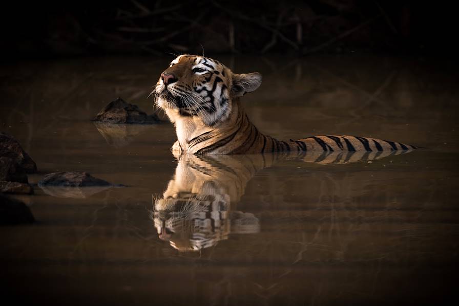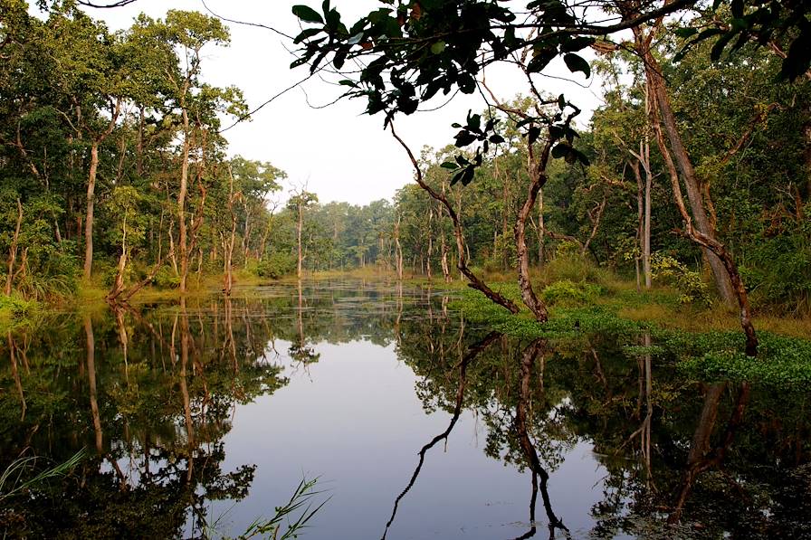 Au programme - Safari en bateau et en Jeep. Réveil aux aurores et, les yeux encore embués, embarquement sur un petit bateau qui flotte sur la rivière Rapti. On croirait encore rêver. C'est à l'endroit où le cours d'eau rencontre la rivière Narayani que, un peu plus éveillé, on prend le petit déjeuner. La navigation se poursuit. Un oiseau atterrit plein de grâce à la surface, un daim tacheté observe depuis les fourrés, les yeux d'un crocodile sont posés à fleur d'eau. Après quelques heures en bateau, transfert pour la Jeep – et la jungle. Sur terre, l'insaisissable tigre du Bengale, avec son pelage flamboyant, progresse à pas feutrés. Pour beaucoup, c'est le roi des lieux. Mais le rhinocéros unicorne asiatique (l'un des derniers au monde !), en seconde place, a des arguments sérieux à faire valoir.