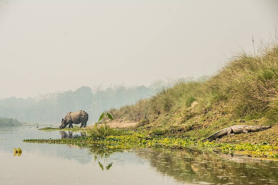 Au pied de l'Himalaya, le parc national de Chitwan étire ses territoires préservés. C'est l'un des rares vestiges du Teraï, région qui s'étendait autrefois sur les piémonts de l'Inde et du Népal. Une zone historique qui accueille, entre rivières paisibles et jungle noueuse, deux des espèces les plus recherchées du territoire.