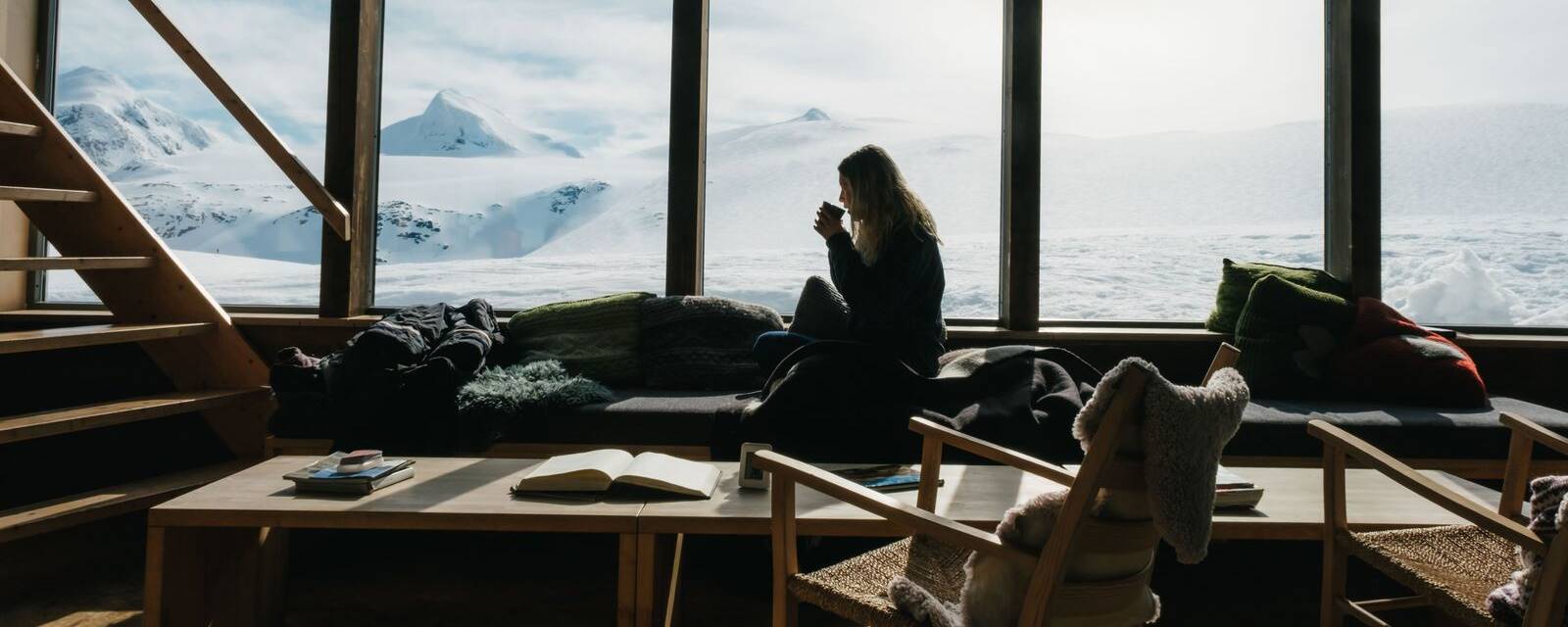 Trajet pour Alta, une belle route de plus de 200 km dans un désert végétal. De grands espaces vallonnés s'étirent à l'horizon, jalonnés seulement de quelques cours d'eau et bosquets. Installation pour deux nuits dans une chambre abritée par un joli chalet accroché à flanc de colline. Au coin du feu, sur une banquette posée devant la fenêtre ou emmitouflés sur la terrasse, vous profitez de l'atmosphère cosy et du calme, précieux, des lieux. Les chalets sont décorés simplement mais avec goût et dotés d'une cuisine bien pratique. À moins que l'on ne préfère s'en remettre à l'équipe du restaurant, à quelques pas.