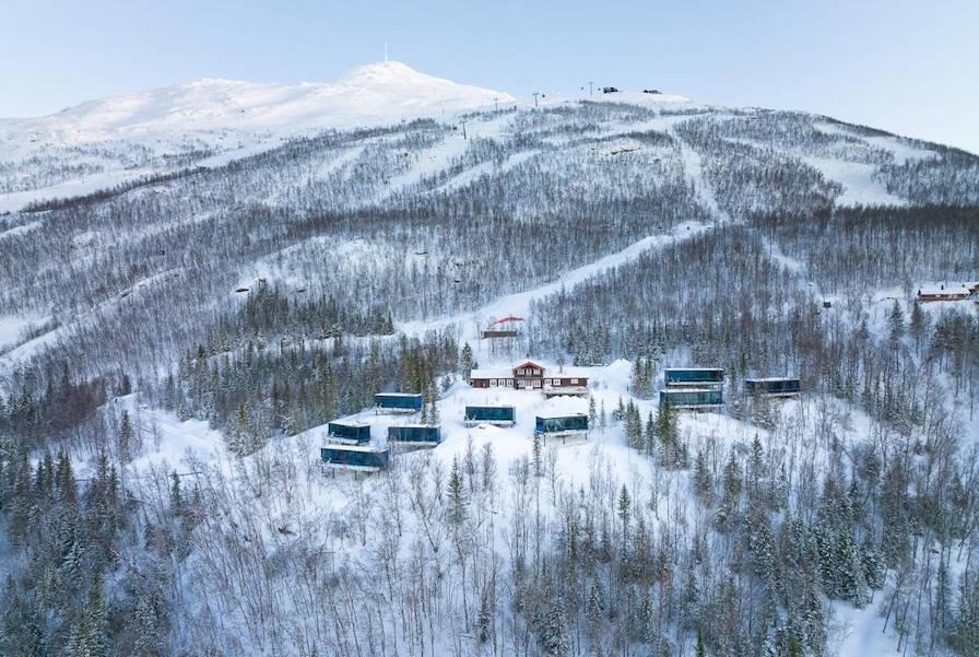 Installation pour une nuit sur les hauteurs de Narvik. Votre établissement est composé de neuf cabanes panoramiques blotties au cœur de la nature arctique. Conçue pour capturer des vues imprenables sur la mer et les montagnes, la vôtre dispose de grandes fenêtres couvrant trois de ses quatre murs et même le plafond, donnant l’illusion, la nuit tombée, de dormir à la belle étoile. Le restaurant, convivial et accessible en téléphérique, place également la vue au cœur de l'expérience.