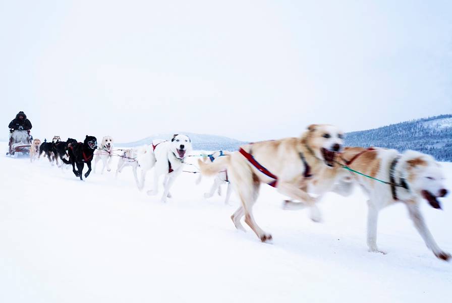 À votre agenda - Balade en traîneau tiré par des Huskys. Le guide met méticuleusement en place les harnais ; les chiens d’attelage s’ébrouent et émettent des jappements impatients. Une fois lancés, vous goûtez au silence majestueux des plaines enneigées. Vous êtes aux commandes de votre propre traîneau, que vous dirigez avec un soin appliqué. Seuls le crissement des patins sur la neige et le souffle des chiens qui s’élève en vapeur blanche viennent fendre l’atmosphère quasi mystique des lieux traversés. Un tableau à la blancheur immaculée, propice à la contemplation.
